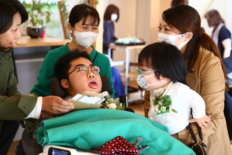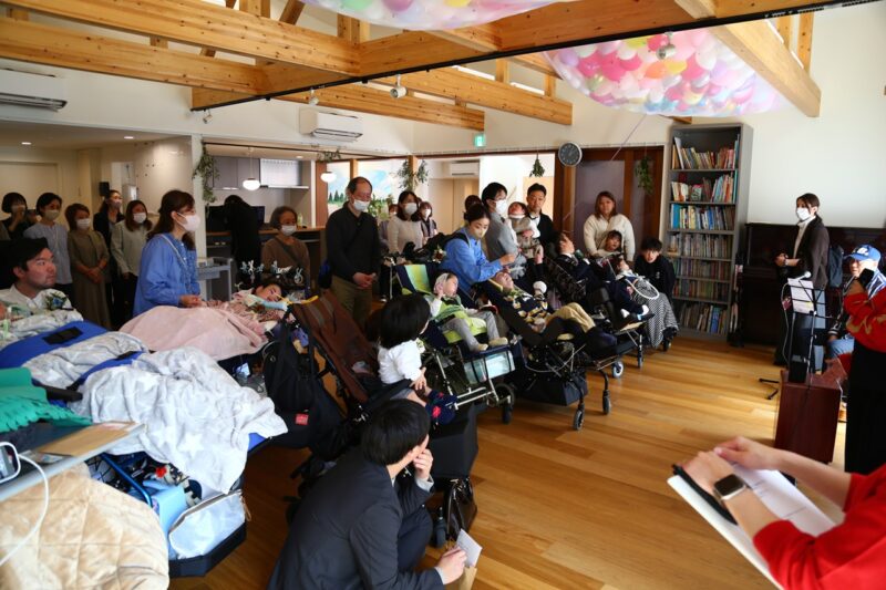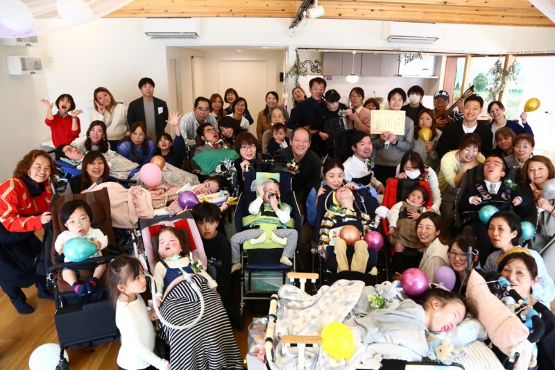 ニコちゃん家(にこちゃんち)に通所している皆さんとご家族が勢ぞろい。